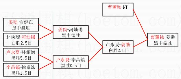 | 1.曹薰铉获得冠军,姜勋获得亚军。决赛比分:曹薰铉3:0姜勋。棋局: | ||