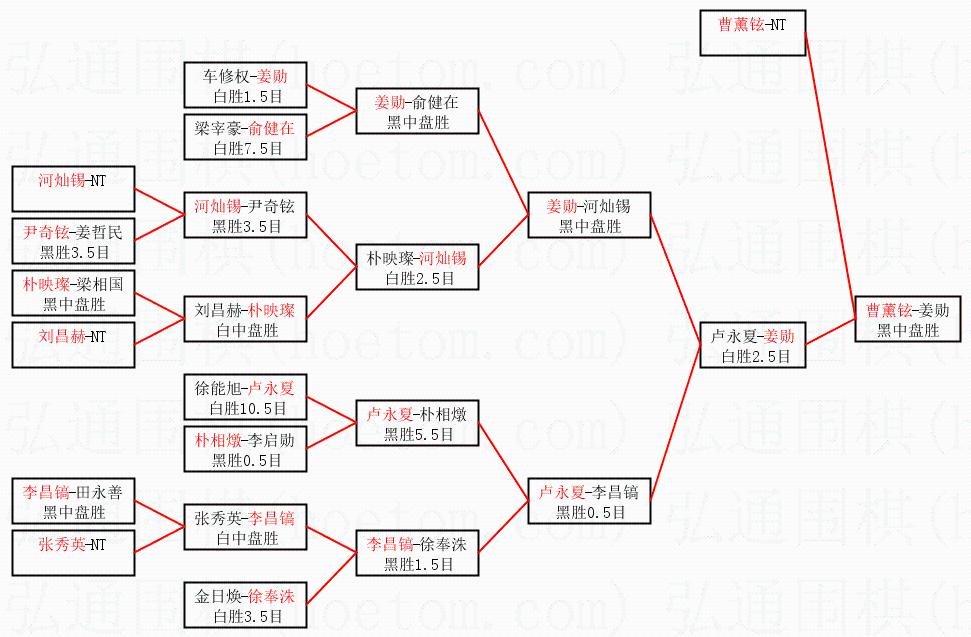 | 1.曹薰铉获得冠军,姜勋获得亚军。决赛比分:曹薰铉3:0姜勋。棋局: | ||