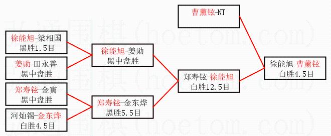 1.曹薰铉获得冠军,徐能旭获得亚军。决赛比分:曹薰铉3:0徐能旭。棋局: