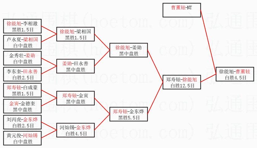 1.曹薰铉获得冠军,徐能旭获得亚军。决赛比分:曹薰铉3:0徐能旭。棋局:
