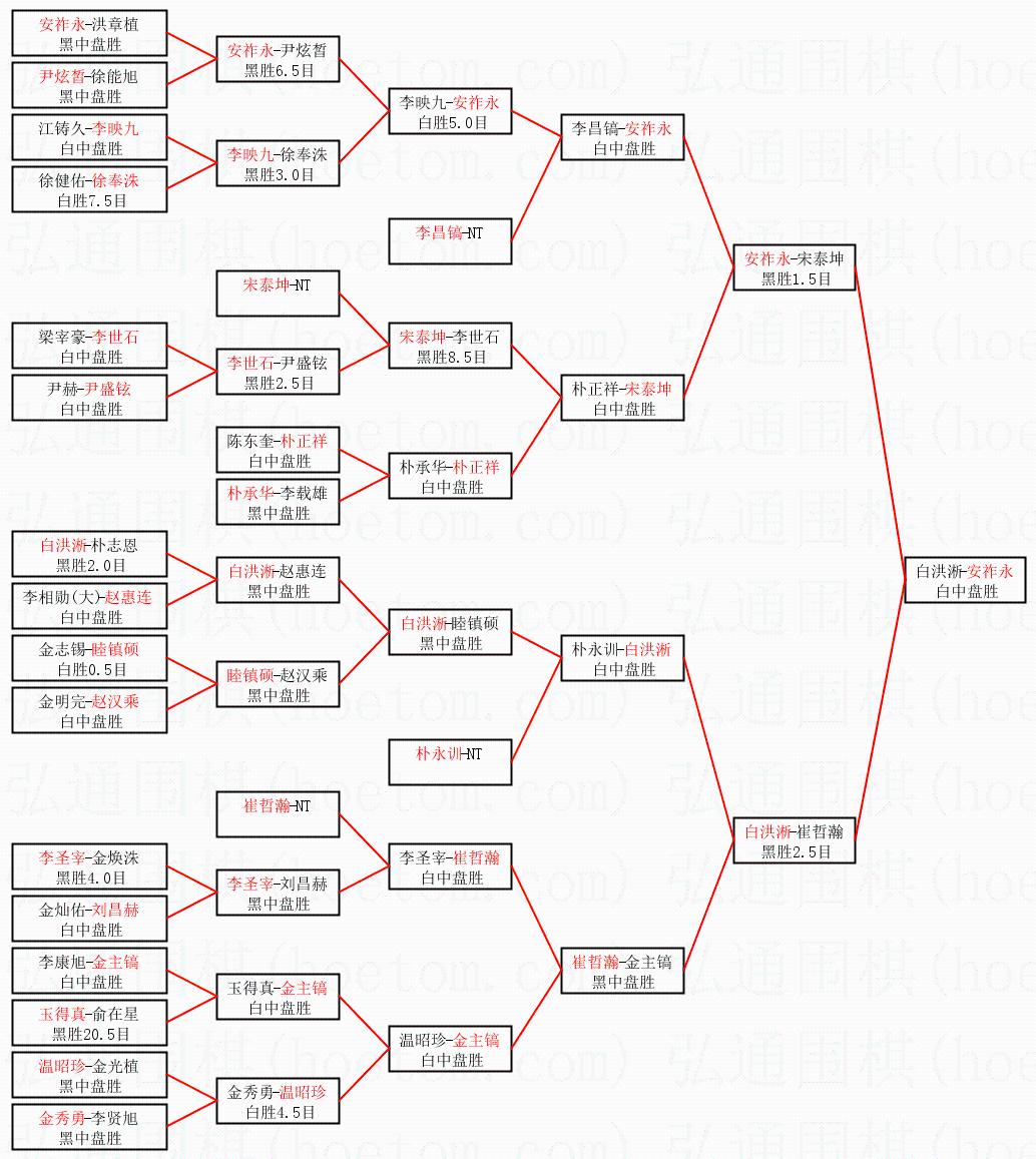 1.安祚永获得冠军,白洪淅获得亚军。决赛比分:安祚永2:1白洪淅。棋局: