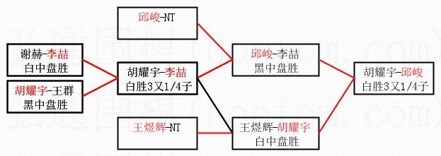 3.下半区半决赛胡耀宇获胜,比分:胡耀宇1:0王煜辉。棋局: