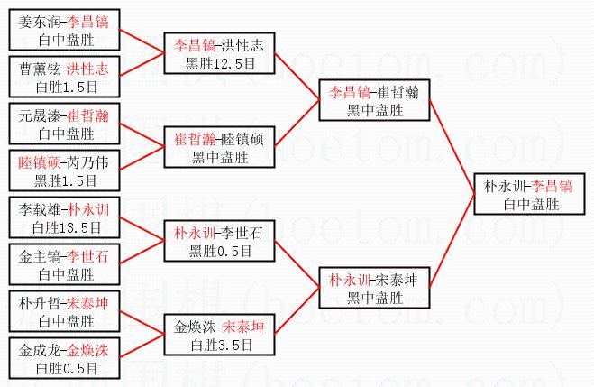 | 1.李昌镐获得冠军,朴永训获得亚军。决赛比分:李昌镐2:1朴永训。棋局: | ||