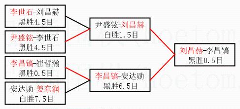 | 2.上半区半决赛刘昌赫获胜, 比分:刘昌赫 1:0 尹盛铉。棋局: | ||
