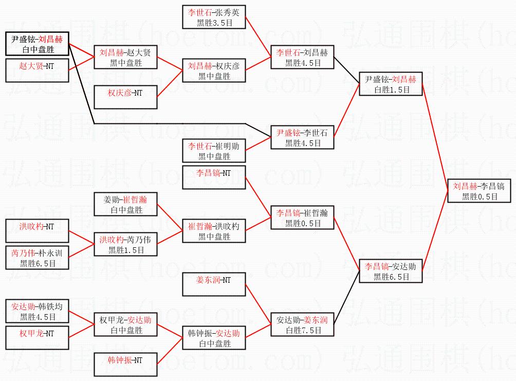 | 1.刘昌赫获得冠军,李昌镐获得亚军。决赛比分:刘昌赫3:0李昌镐。棋局: | ||