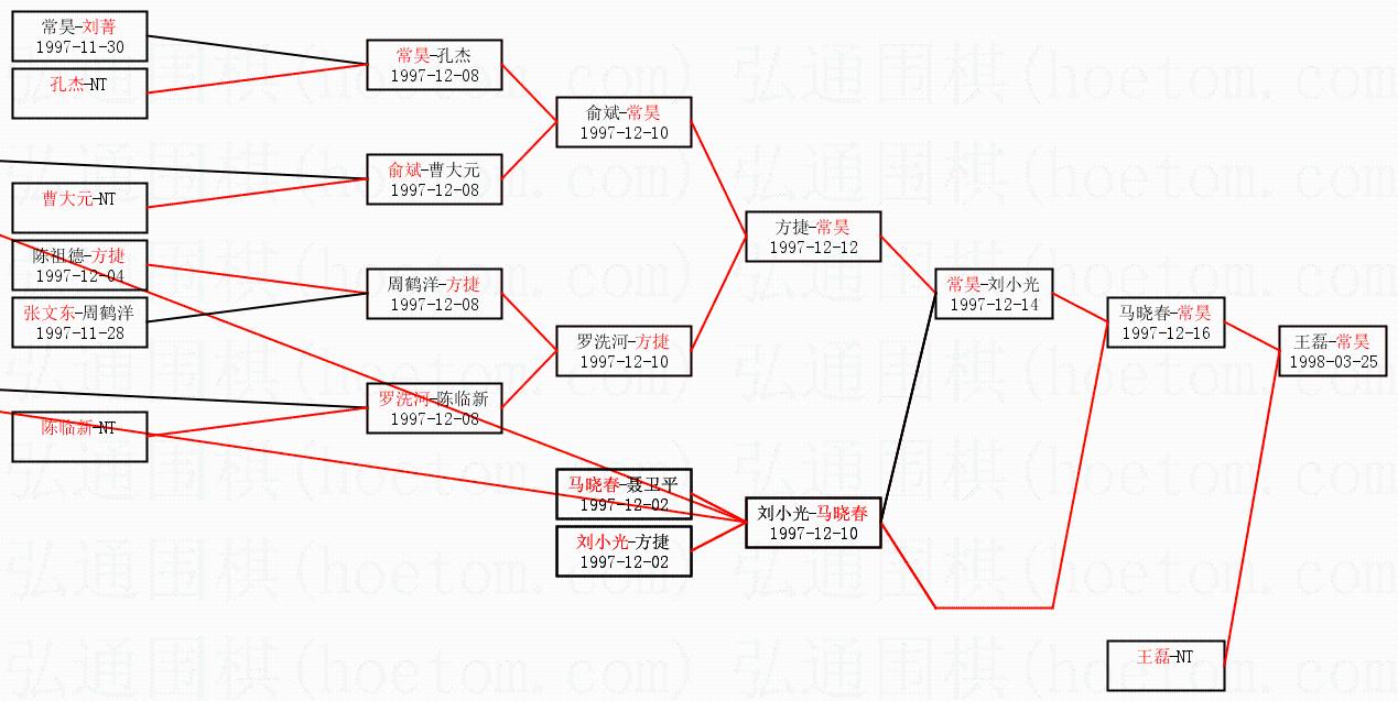 1.常昊获得冠军,王磊获得亚军。决赛比分:常昊3:0王磊。棋局: