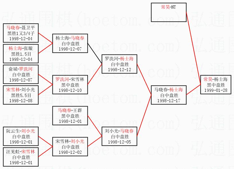 1.常昊获得冠军,杨士海获得亚军。决赛比分:常昊3:0杨士海。棋局: