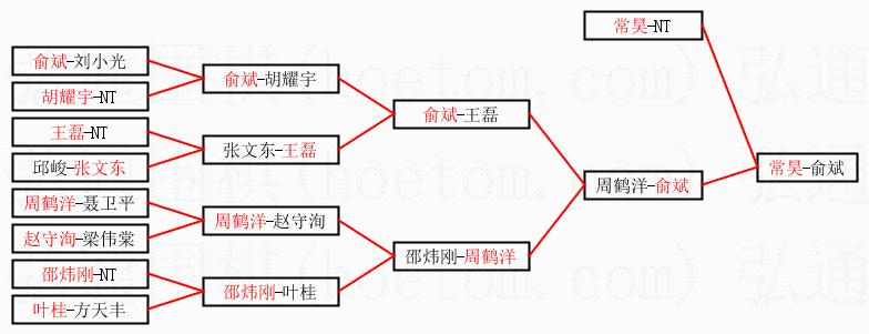 1.常昊获得冠军,俞斌获得亚军。决赛比分:常昊2:0俞斌。棋局: