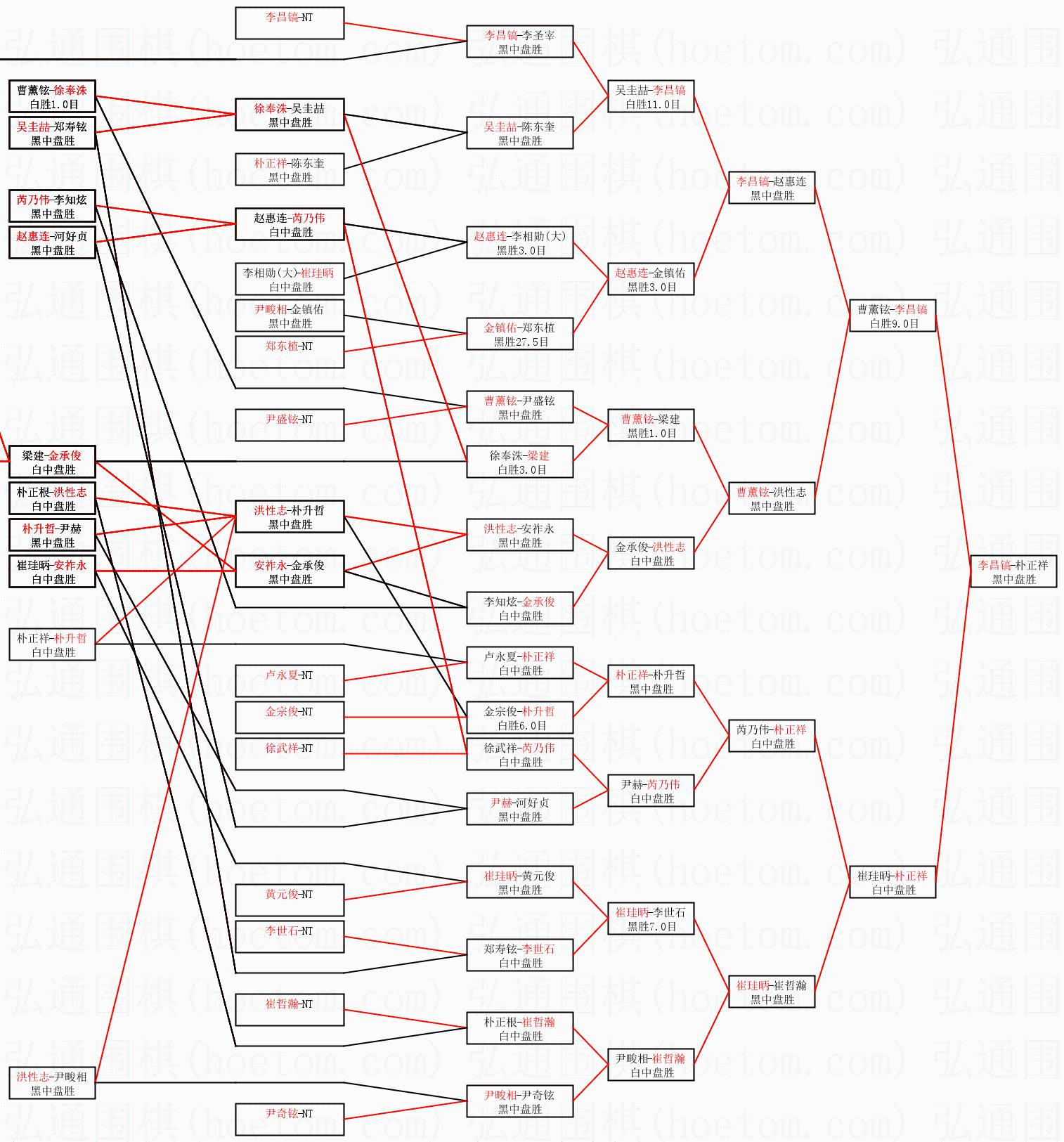 2.上半区半决赛李昌镐获胜, 比分:李昌镐 1:0 曹薰铉。棋局: