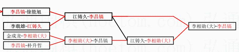 | 3.下半区半决赛李相勋(大)获胜,比分:李相勋(大)1:0江铸久。棋局: | ||