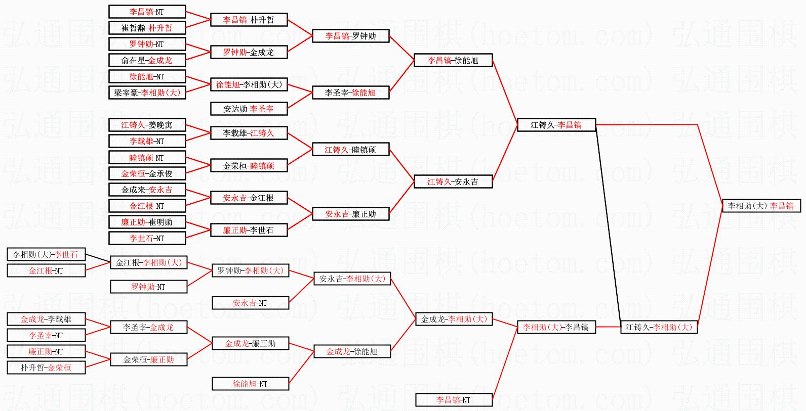 1.李昌镐获得冠军,李相勋(大)获得亚军。决赛比分:李昌镐2:1李相勋(大)。棋局: