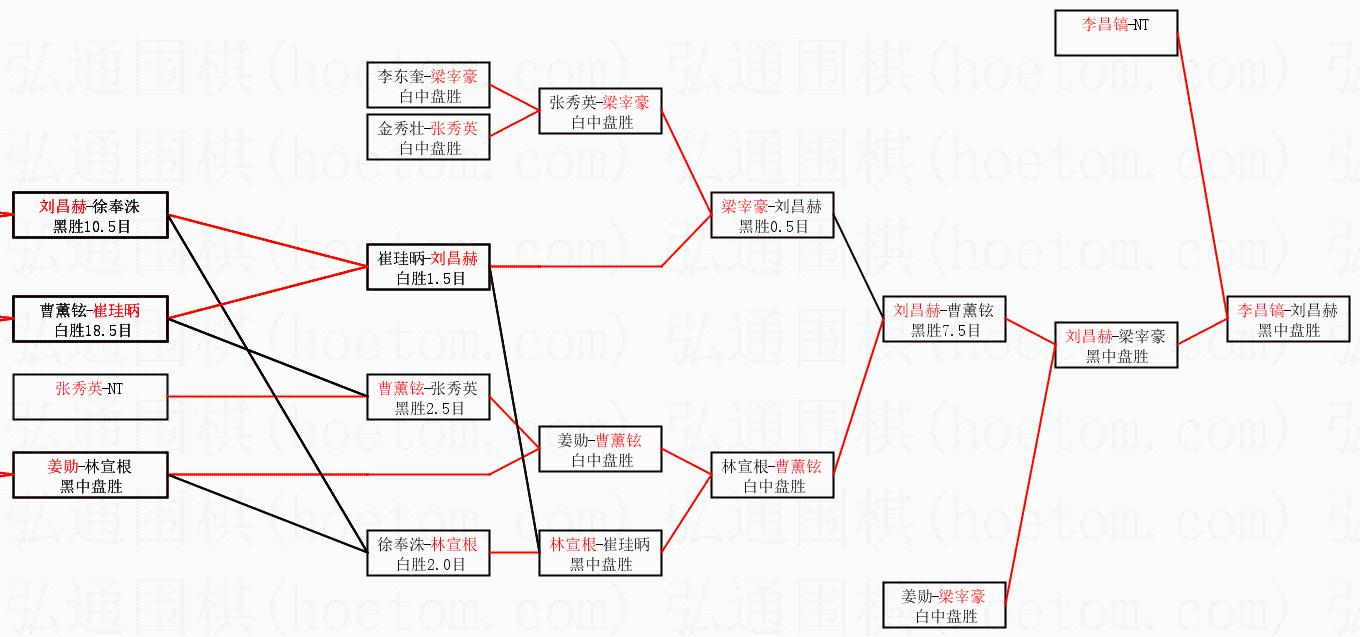 | 3.下半区半决赛刘昌赫获胜,比分:刘昌赫2:0梁宰豪。棋局: | ||