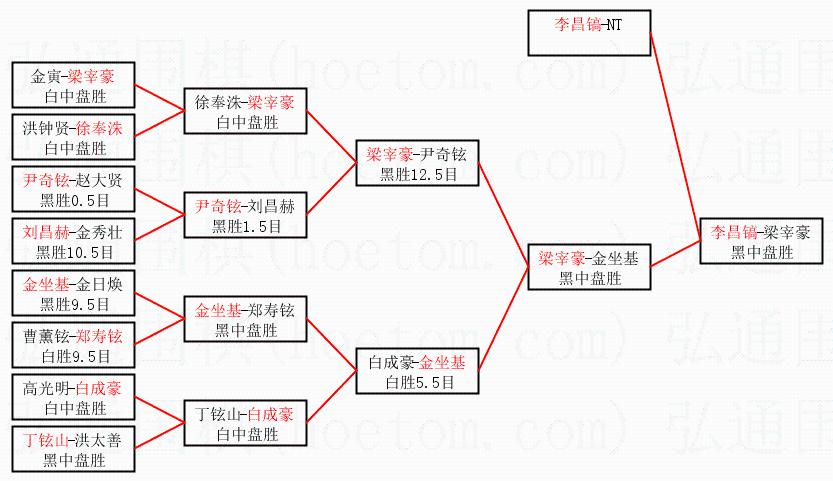 | 1.李昌镐获得冠军,梁宰豪获得亚军。决赛比分:李昌镐3:1梁宰豪。棋局: | ||