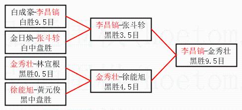 | 1.李昌镐获得冠军,金秀壮获得亚军。决赛比分:李昌镐2:0金秀壮。棋局: | ||