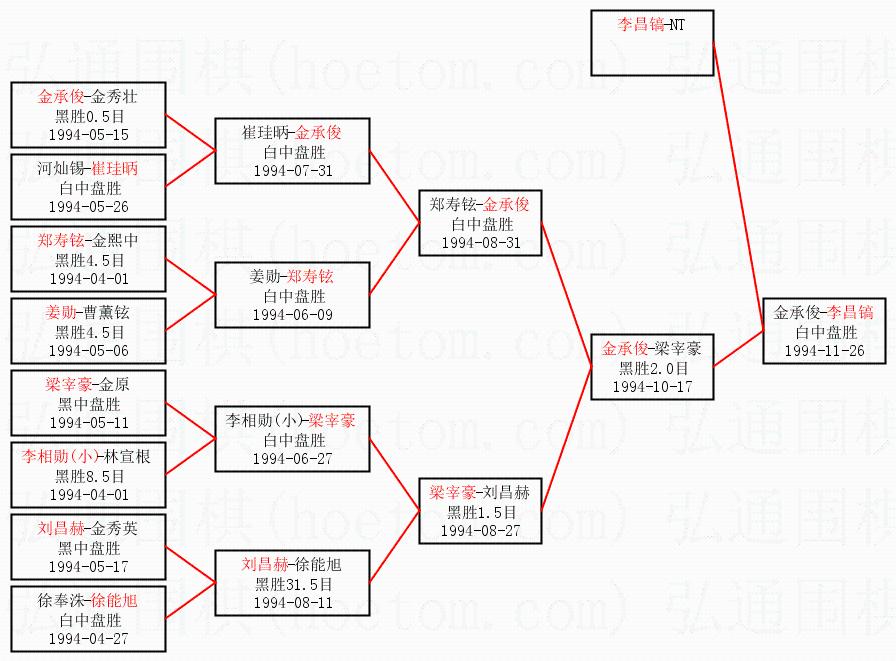 | 1.李昌镐获得冠军,金承俊获得亚军。决赛比分:李昌镐3:1金承俊。棋局: | ||