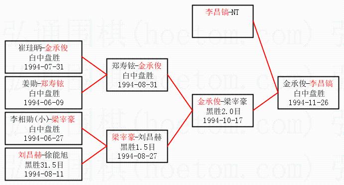 | 1.李昌镐获得冠军,金承俊获得亚军。决赛比分:李昌镐3:1金承俊。棋局: | ||