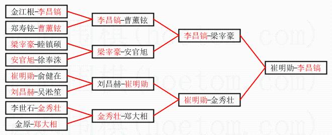 | 1.李昌镐获得冠军,崔明勋获得亚军。决赛比分:李昌镐3:0崔明勋。棋局: | ||