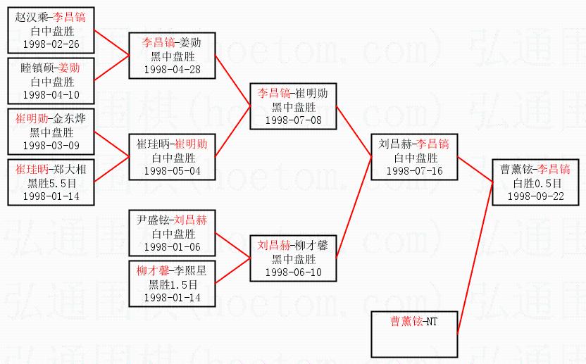 | 1.李昌镐获得冠军,曹薰铉获得亚军。决赛比分:李昌镐3:1曹薰铉。棋局: | ||