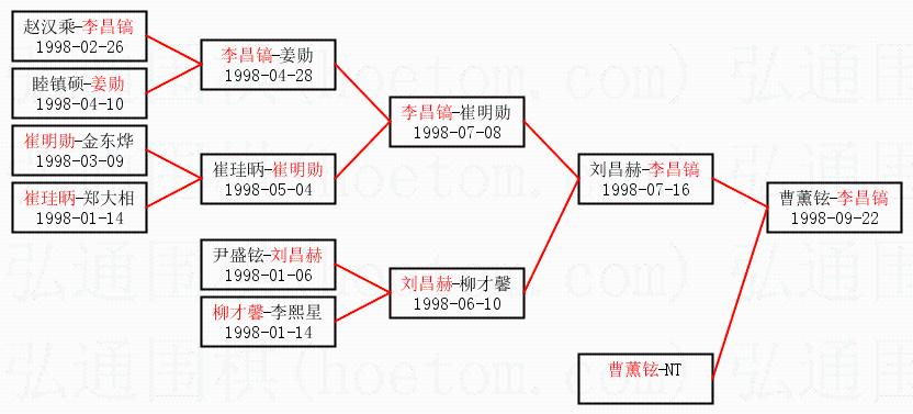 | 1.李昌镐获得冠军,曹薰铉获得亚军。决赛比分:李昌镐3:1曹薰铉。棋局: | ||