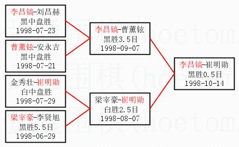 1.李昌镐获得冠军,崔明勋获得亚军。决赛比分:李昌镐3:0崔明勋。棋局: