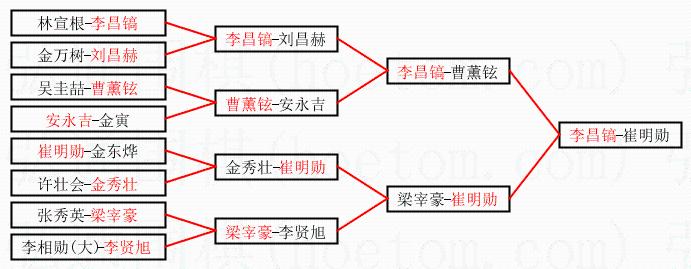 1.李昌镐获得冠军,崔明勋获得亚军。决赛比分:李昌镐3:0崔明勋。棋局: