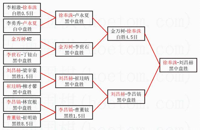 | 1.徐奉洙获得冠军,刘昌赫获得亚军。决赛比分:徐奉洙3:2刘昌赫。棋局: | ||