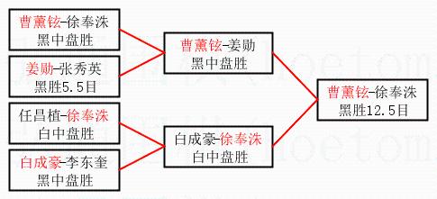1.曹薰铉获得冠军,徐奉洙获得亚军。决赛比分:曹薰铉2:1徐奉洙。棋局: