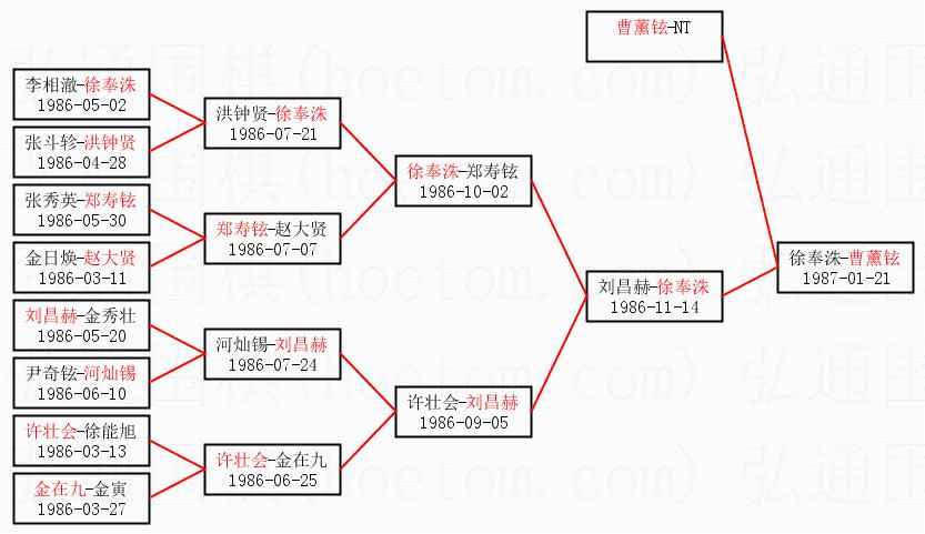 | 1.曹薰铉获得冠军,徐奉洙获得亚军。决赛比分:曹薰铉3:1徐奉洙。棋局: | ||