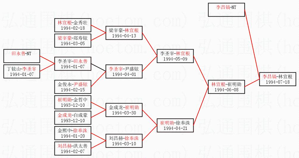 1.李昌镐获得冠军,林宣根获得亚军。决赛比分:李昌镐3:0林宣根。棋局: