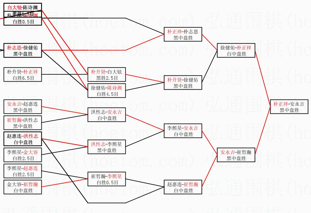 2.上半区半决赛朴正祥获胜, 比分:朴正祥 1:0 徐健佑。棋局: