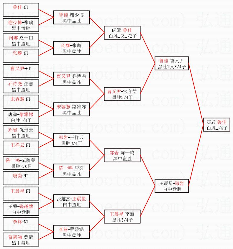 | 2.上半区半决赛鲁佳获胜, 比分:鲁佳 1:0 曹又尹。棋局: | ||