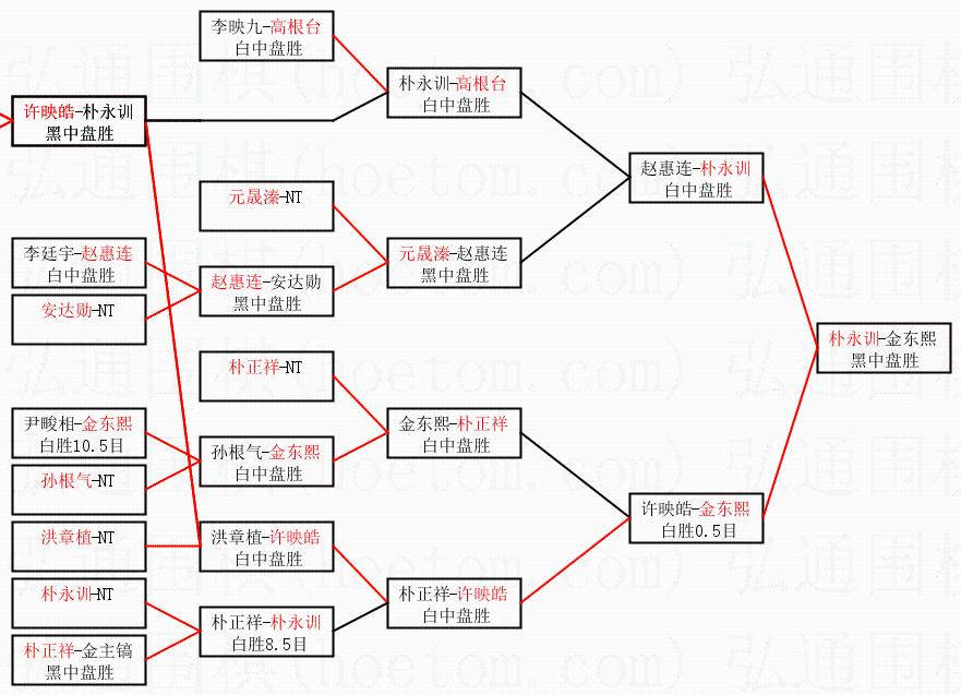 1.朴永训获得冠军,金东熙获得亚军。决赛比分:朴永训2:1金东熙。棋局: