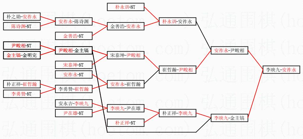 1.安祚永获得冠军,李映九获得亚军。决赛比分:安祚永2:2李映九。棋局: