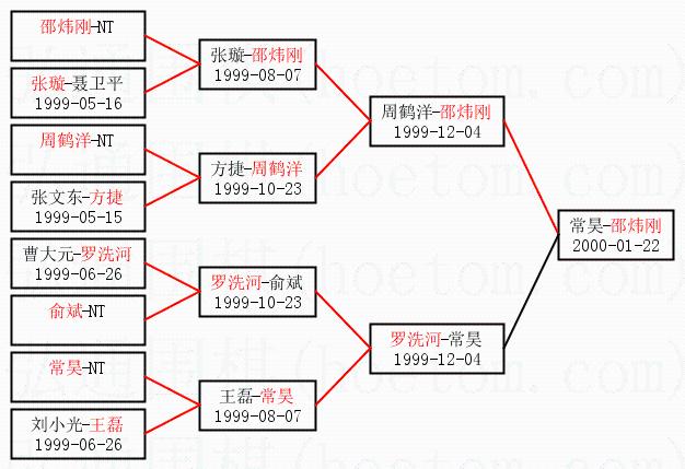 1.邵炜刚获得冠军,常昊获得亚军。决赛比分:邵炜刚1:0常昊。棋局: