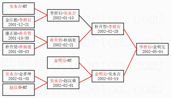 | 2.上半区半决赛李世石获胜, 比分:李世石 1:0 朴升哲。棋局: | ||