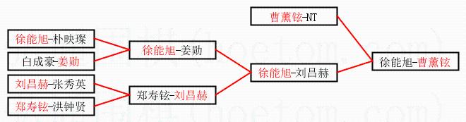 1.曹薰铉获得冠军,徐能旭获得亚军。决赛比分:曹薰铉3:1徐能旭。棋局: