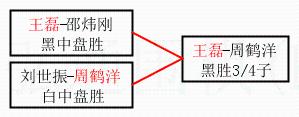 2.上半区半决赛王磊获胜, 比分:王磊 1:0 邵炜刚。棋局: