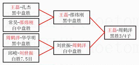 2.上半区半决赛王磊获胜, 比分:王磊 1:0 邵炜刚。棋局: