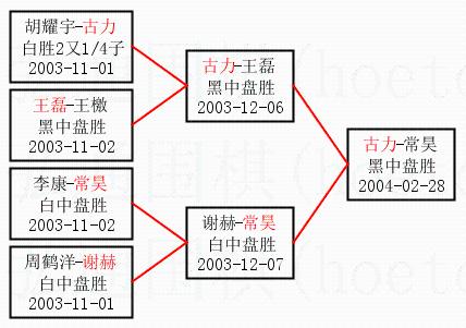 1.古力获得冠军,常昊获得亚军。决赛比分:古力1:0常昊。棋局: