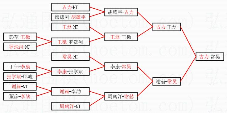 1.古力获得冠军,常昊获得亚军。决赛比分:古力1:0常昊。棋局: