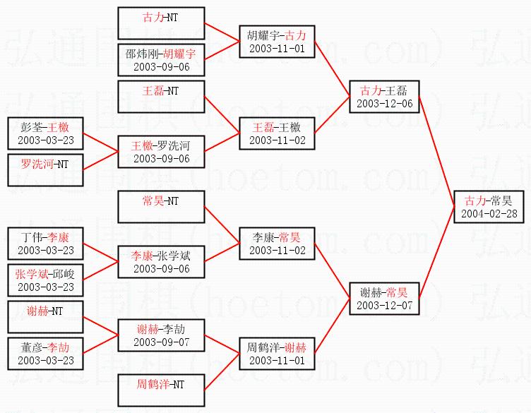 1.古力获得冠军,常昊获得亚军。决赛比分:古力1:0常昊。棋局:
