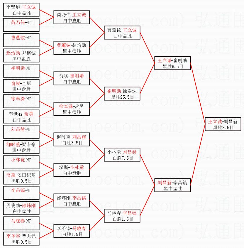 | 1.王立诚获得冠军,刘昌赫获得亚军。决赛比分:王立诚3:2刘昌赫。棋局: | ||