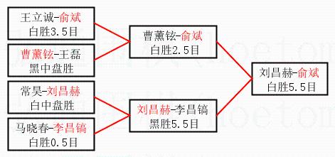 | 1.俞斌获得冠军,刘昌赫获得亚军。决赛比分:俞斌3:1刘昌赫。棋局: | ||