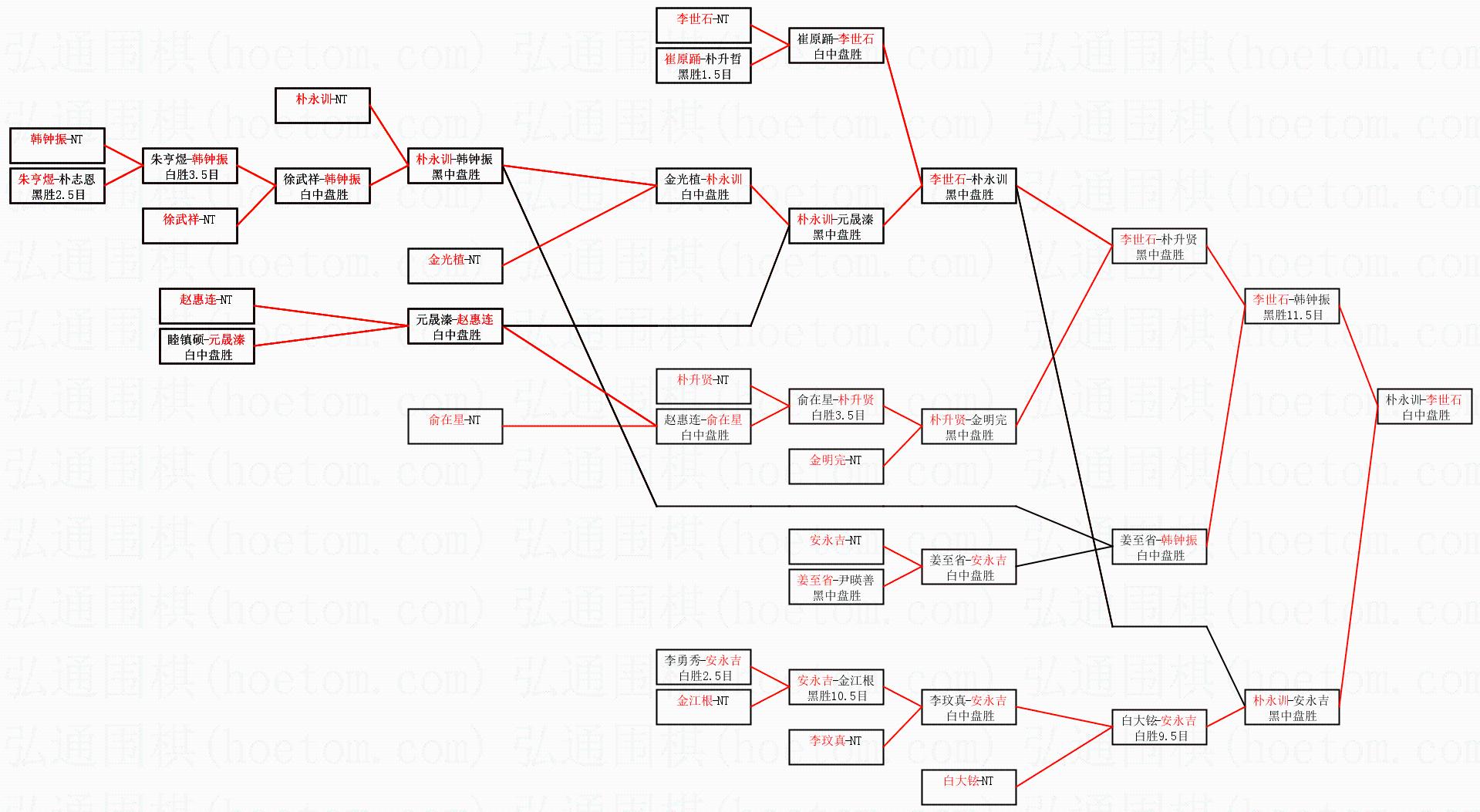1.李世石获得冠军,朴永训获得亚军。决赛比分:李世石1:0朴永训。棋局: