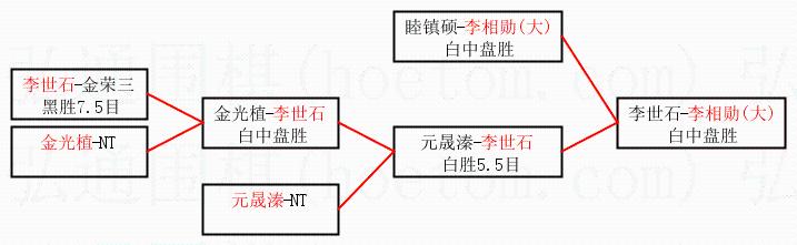 | 1.李相勋(大)获得冠军,李世石获得亚军。决赛比分:李相勋(大)2:1李世石。棋局: | ||