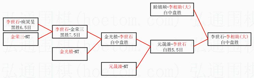 | 1.李相勋(大)获得冠军,李世石获得亚军。决赛比分:李相勋(大)2:1李世石。棋局: | ||