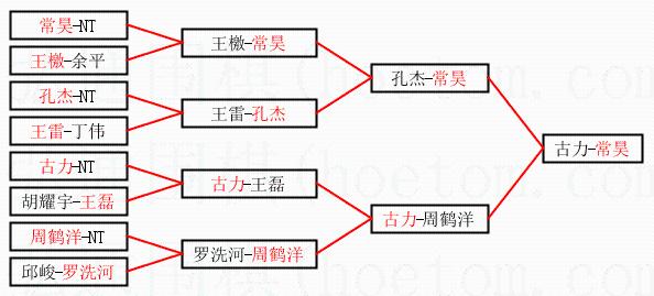 1.常昊获得冠军,古力获得亚军。决赛比分:常昊1:0古力。棋局: