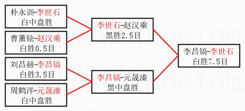 3.下半区半决赛李昌镐获胜,比分:李昌镐1:0元晟溱。棋局: