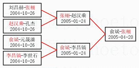 | 1.张栩获得冠军,俞斌获得亚军。决赛比分:张栩3:1俞斌。棋局: | ||