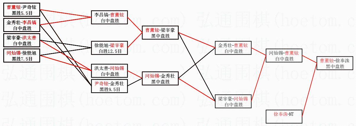 | 1.曹薰铉获得冠军,徐奉洙获得亚军。决赛比分:曹薰铉4:1徐奉洙。棋局: | ||